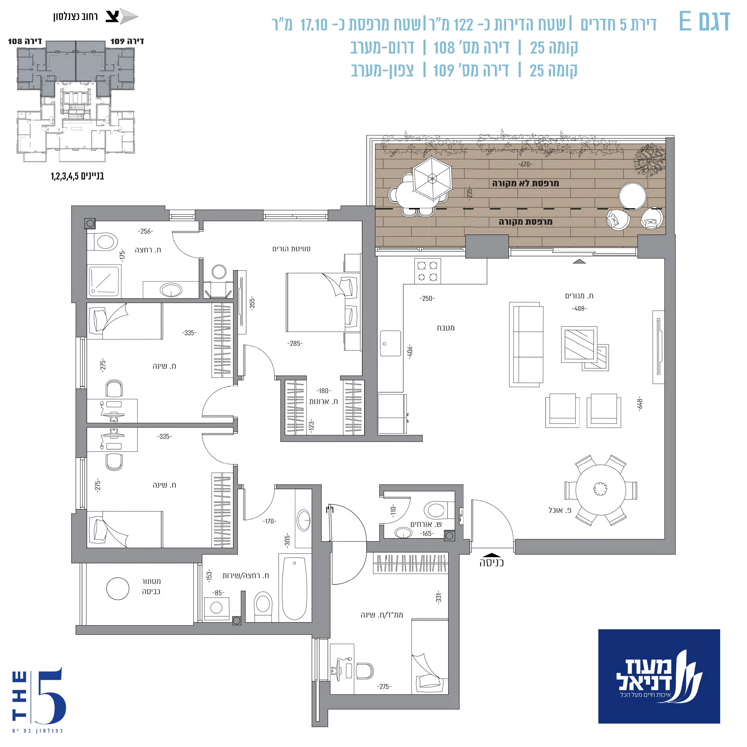 דירה מרהיבה עם מרפסת סוכה 17.1 מ"ר בקומה 25 בפרויקט החדש והיוקרתי THE FIVE בבת ים של מעוז דניאל.